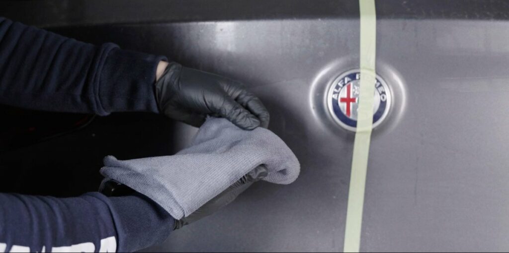 per aumentare la lubrificazione ed ottenere un miglior risultato, nebulizzare sia in fase di pulizia che di rifinitura, un po’ di prodotto anche sul panno in microfibra